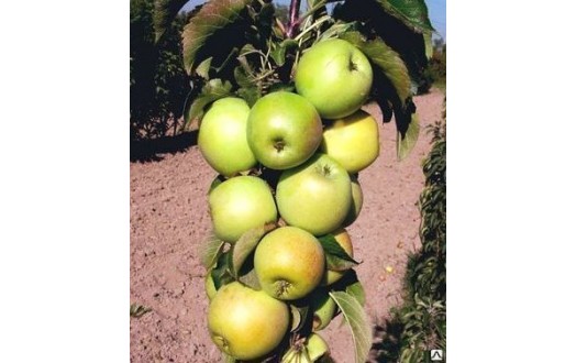 Яблоня колонновидная Гирлянда представляет собой разновидность осеннего срока потребления. Ее созревание начинается в сентябре. Дерево вырастаету до высоты 2,5 метра. Плоды у сорта имеют примерно одинаковый размер. При этом их вес варьируется от 180 до 220 г. Форму яблоко имеет немного вытянутую. Одно из преимуществ разновидности – это достаточно длительный срок хранения плодов. В среднем они без проблем «доживают» до февраля. Цвет плодов зеленый. Если растение высажено на солнечной стороне, у яблок может появляться темно-красный румянец. Мякоть зеленовато-белого цвета, плотная и очень нежная. По вкусу сортовой плод чем-то напоминает грушу: кисло-сладкий и очень сочный.